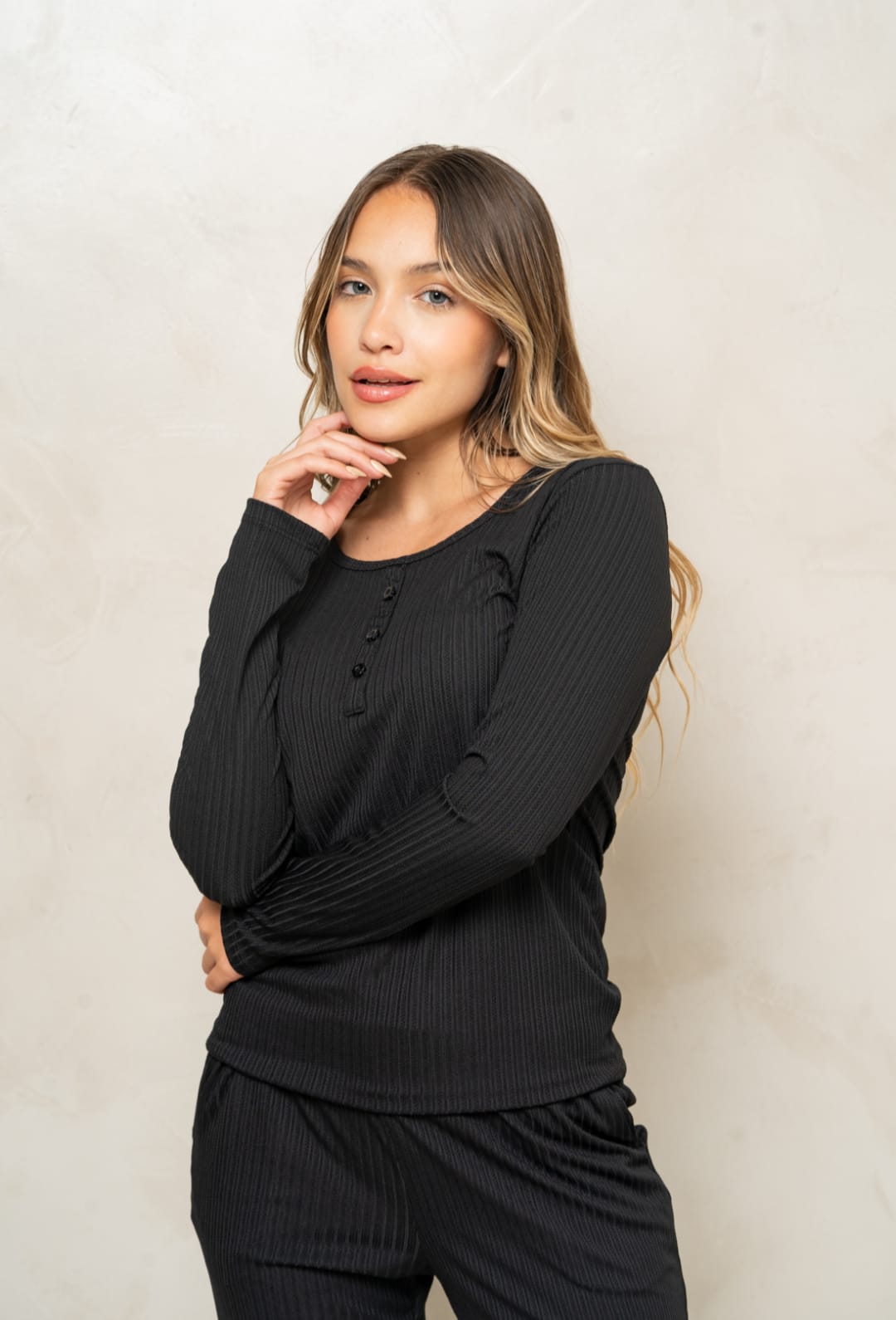 TRENDA 5601 SET PIJAMA DESAGUJADO REMERA Y PANTALON CON RIBETE